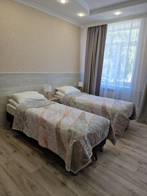 Рассчитан на 2 посетителя Уютный номер с одной большой или двумя раздельными кроватями, оформленный в светлых тонах, оснащенный всем необходимым: телевизор, кондиционер, собственный сан узел с душевой кабиной. Смежный с общей столовой зоной