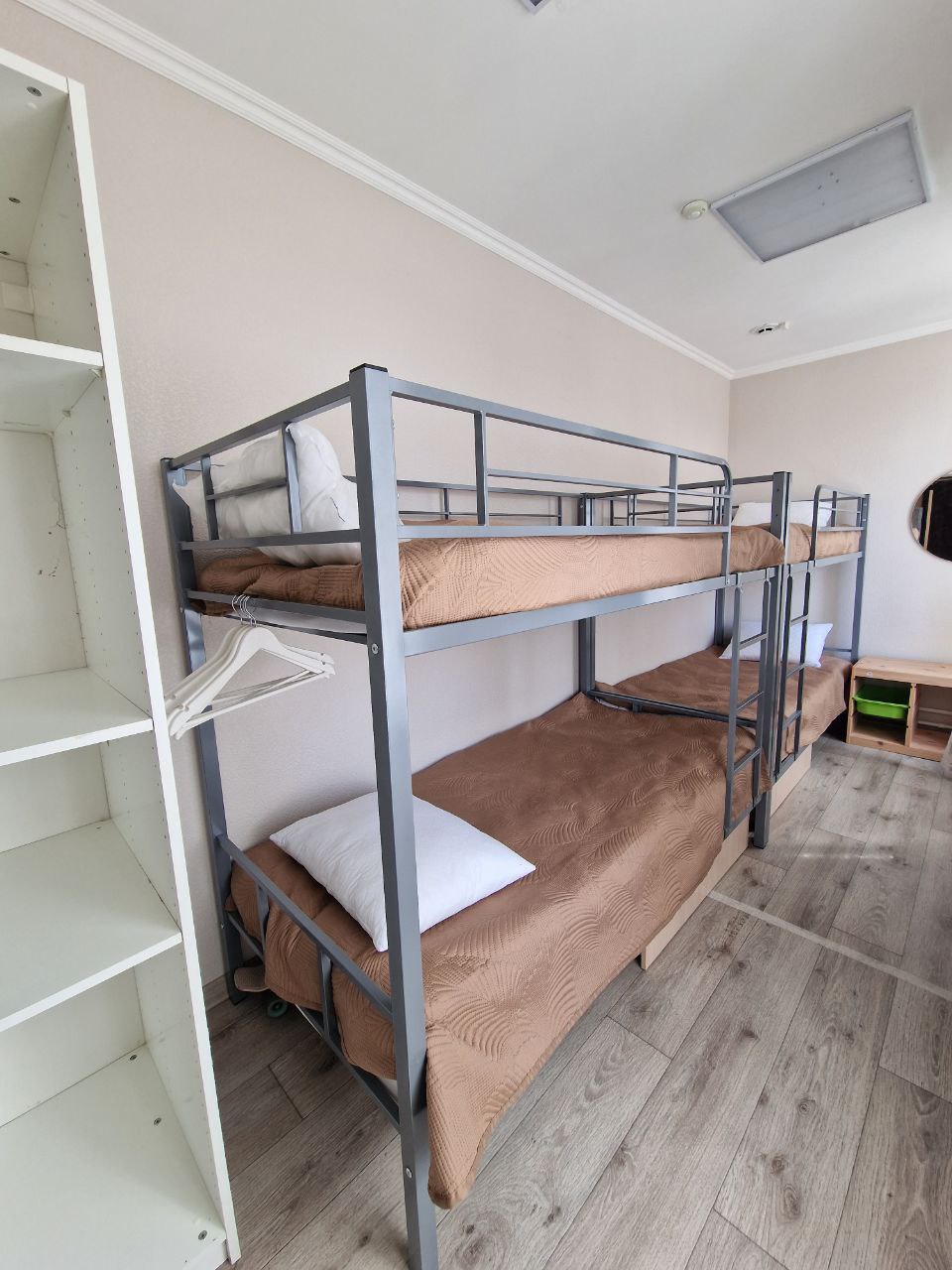 Компактный номер с двумя двухъярусными кроватями с удобствами на этаже Общий сан узел, расположенный на 1м этаже Им могут пользоваться все гости Гостевого дома, также и Гости хостела